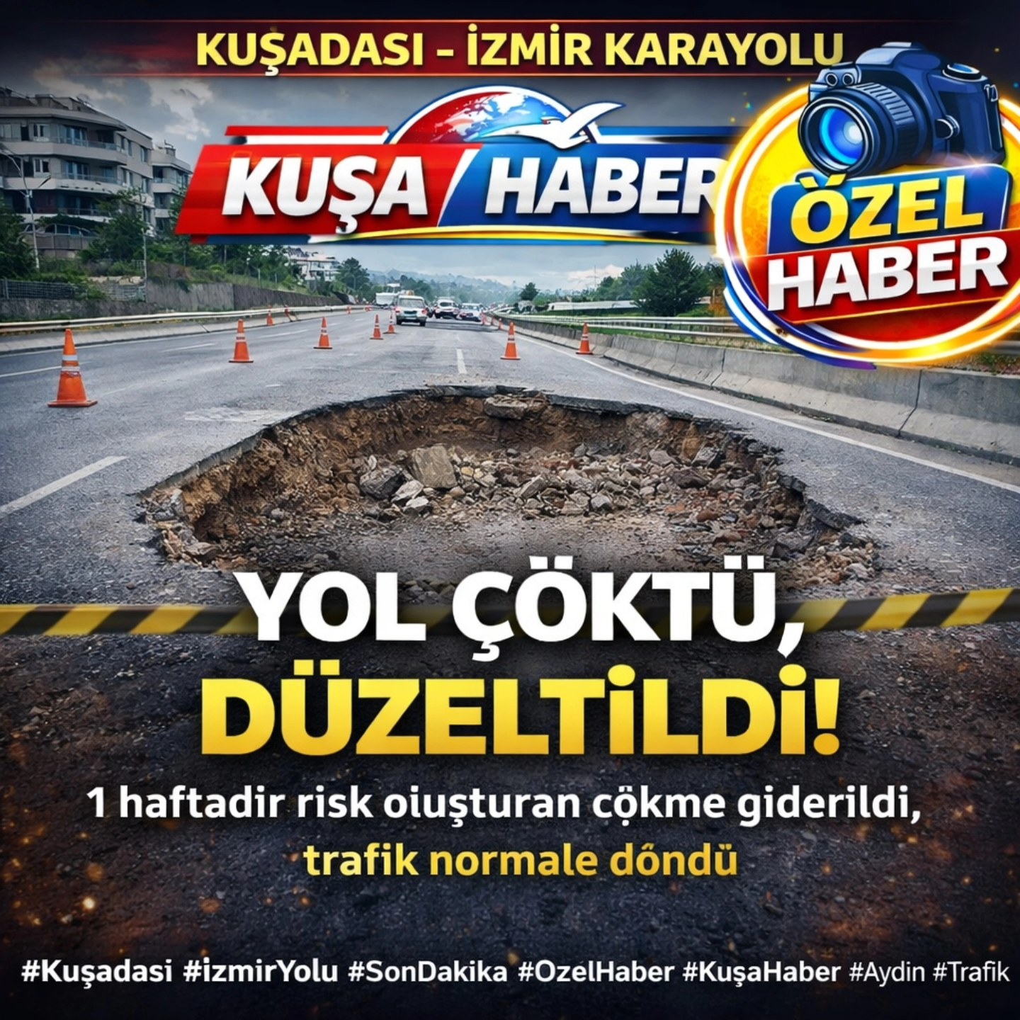 KUŞADASI-İZMİR KARAYOLUNDAKİ ÇÖKME GİDERİLDİ