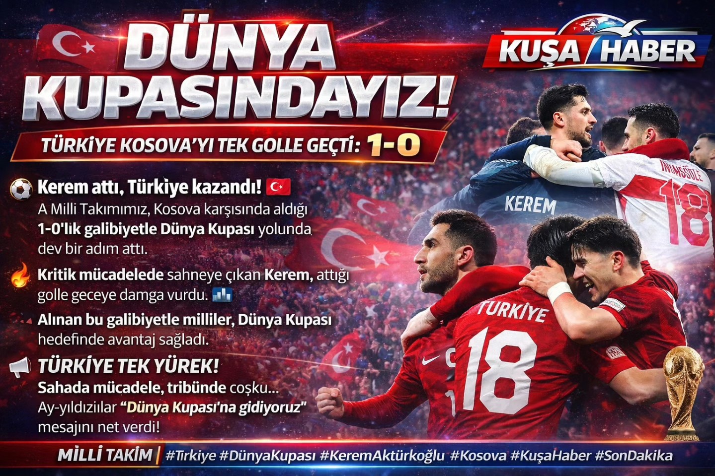 A Milli Futbol Takımımız, Dünya Kupası yolunda kritik karşılaşmada Kosova’yı 1-0 mağlup ederek önemli bir galibiyete imza attı.Karşılaşmanın tek golü, yıldız futbolcu Kerem Aktürkoğlu’ndan geldi. Mücadelenin büyük bölümünde oyunun kontrolünü…