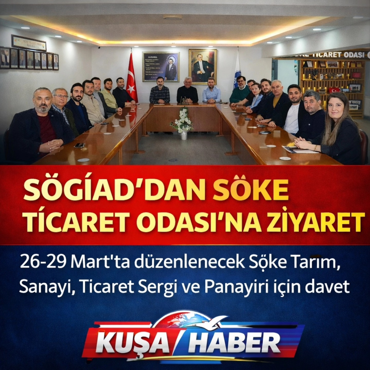 Görüşmede, 26–29 Mart tarihlerinde düzenlenecek 30. Söke Tarım, Sanayi, Ticaret Sergi ve Panayırı hakkında bilgi verilerek oda yönetimi fuara davet edildi. Ziyaret, iyi dileklerin iletilmesi ve hatıra fotoğrafı çekimiyle sona erdi.