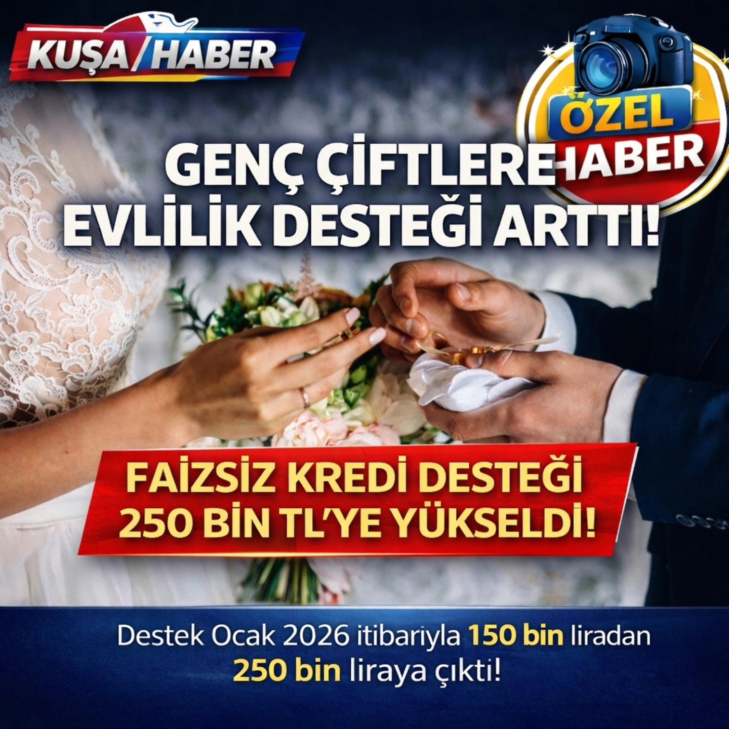 Daha önce 150 bin lira olan destek tutarı, Ocak 2026 itibarıyla 250 bin liraya yükseltildi.